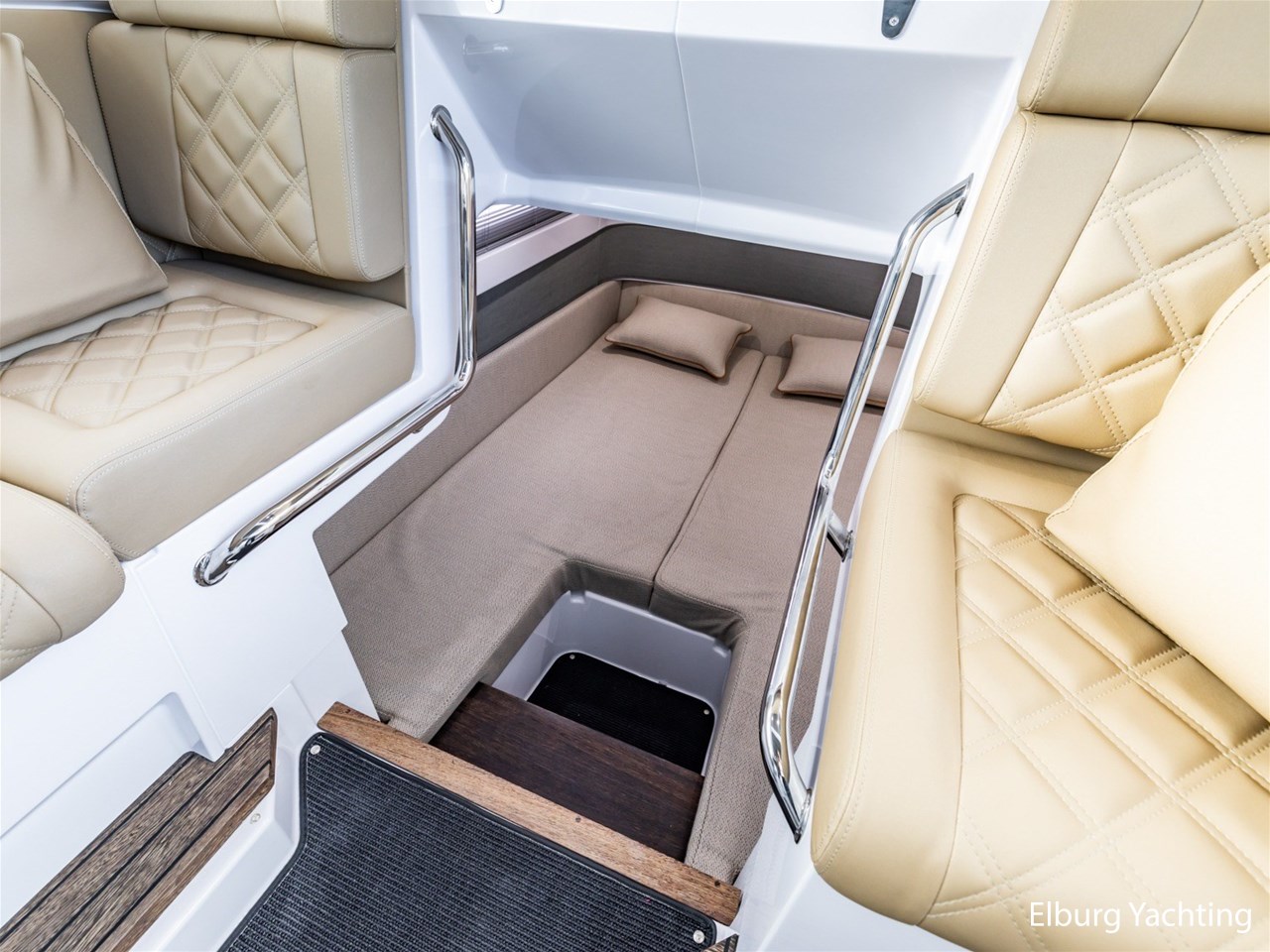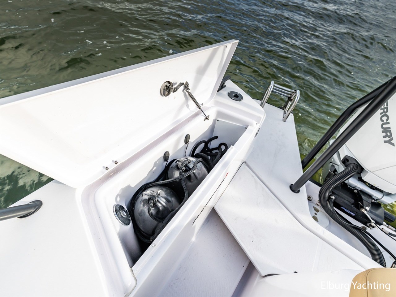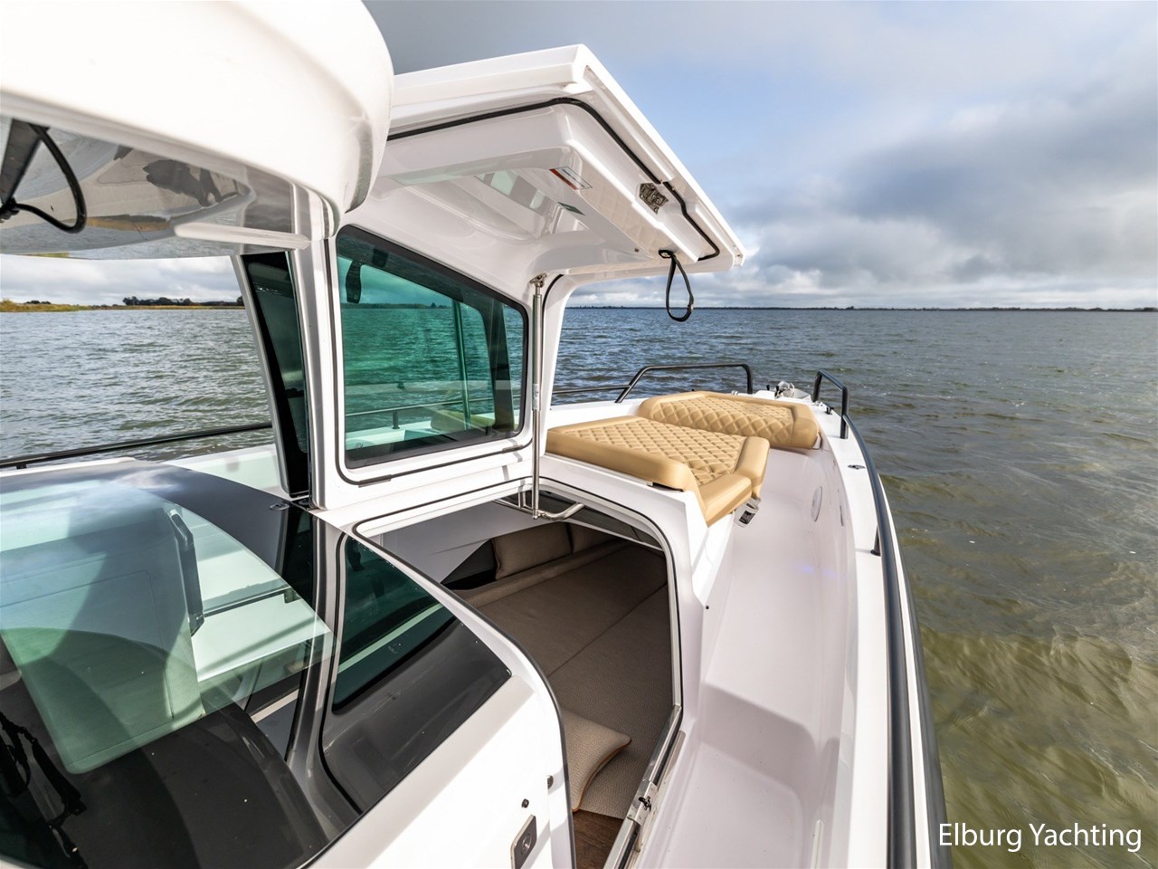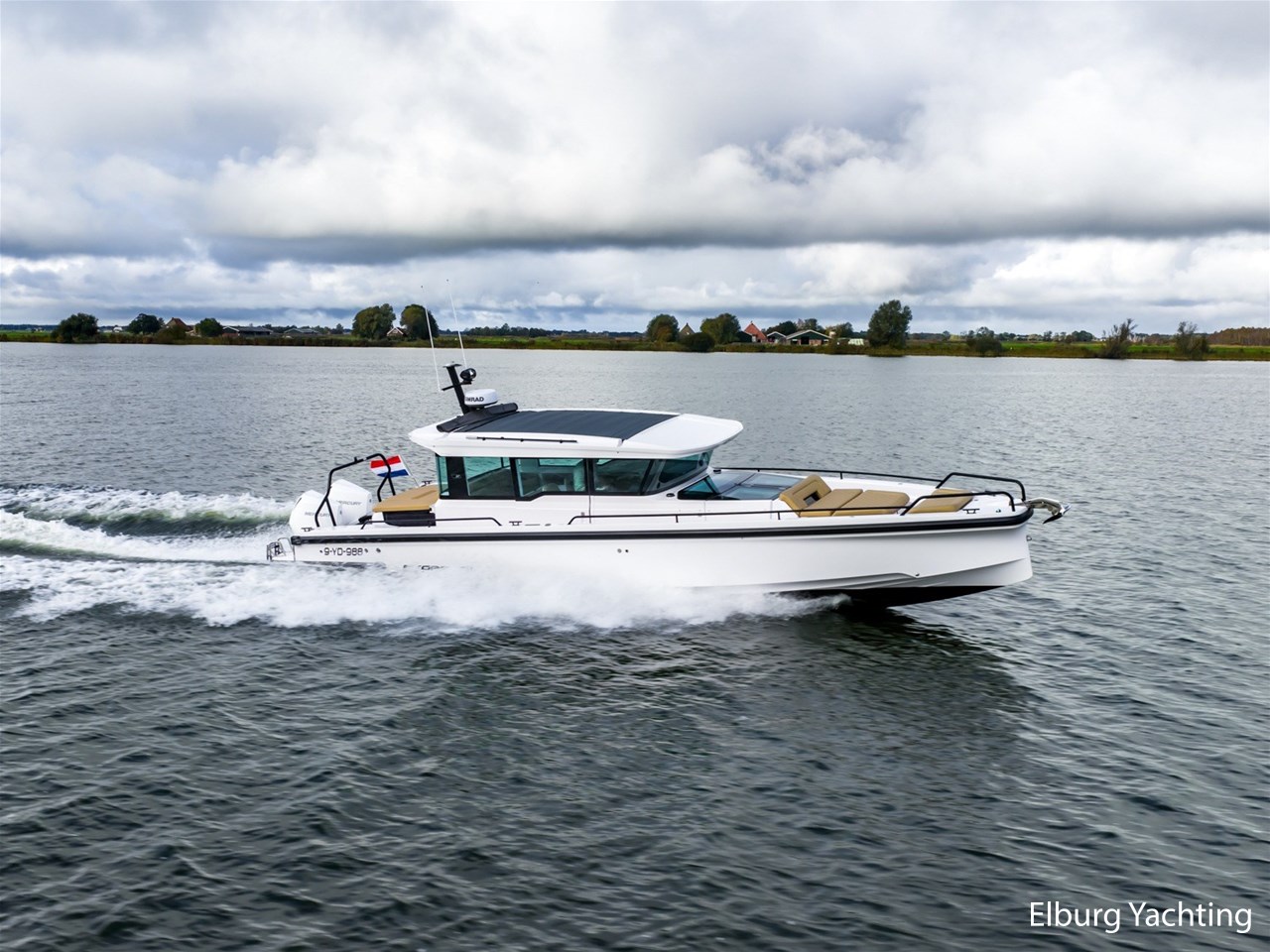 Deze Axopar XC Cross Cabin is een veelzijdig en stoer gelijnd jacht. Dankzij haar V-Stepped romp in combinatie met de Joystick Piloting vertoont ze mooi vaargedrag op groter water met een hogere topsnelheid en is ze erg gemakkelijk te manoeuvreren. Verder is ze voorzien van een dubbele cabine en een natte cel. Het jacht is fraai gestyled middels het Brabus Line Trim Package en geeft een luxe en fraai afgewerkte indruk. Deze Axopar wordt voortgestuwd door twee 300 pk sterke Mercury Verado motoren. Rondom is eenvoudig bewegen middels de gangboorden en de twee te openen zijdeuren in het stuurhuis. Voor- en achter het stuurhuis zijn twee royale zonnebedden gesitueerd. Het stuurhuis is rondom voorzien van ramen waardoor er een optimaal 360 graden zichtveld is. Tevens is het stuurhuis voorzien van een gezellige dinette met koelkast onder de vaar- / meevaarstoel. Dit jacht is een sportieve allrounder en wordt onder andere geleverd met: Led-verlichting rondom, Webasto elektrisch schuifdak, vergrootte kastruimte voorhut, zonnebed voordek met bergruimte, Webasto verwarming, raamcovers, Dometic koelkast, zoeklicht met afstandsbediening, buitendouche met warm water, onderwaterverlichting, Waterski-beugel, Audiosysteem met 5 speakers binnen en 4 speakers buiten, Toiletruimte met douche en hoezen voor de buitenkussens. Voor vragen en/of het maken van een afspraak bent u 7 dagen per week van harte welkom bij Elburg Yachting.