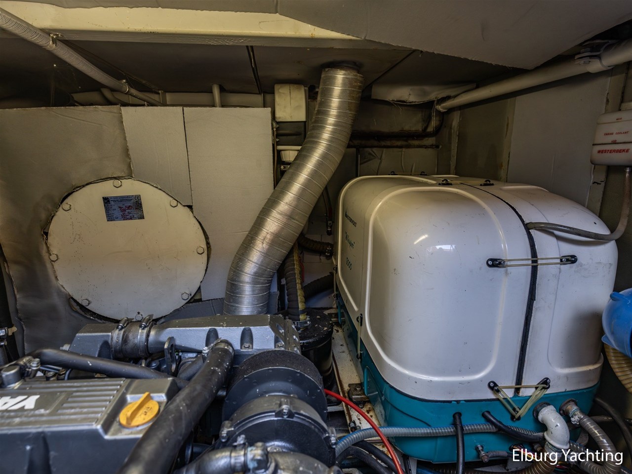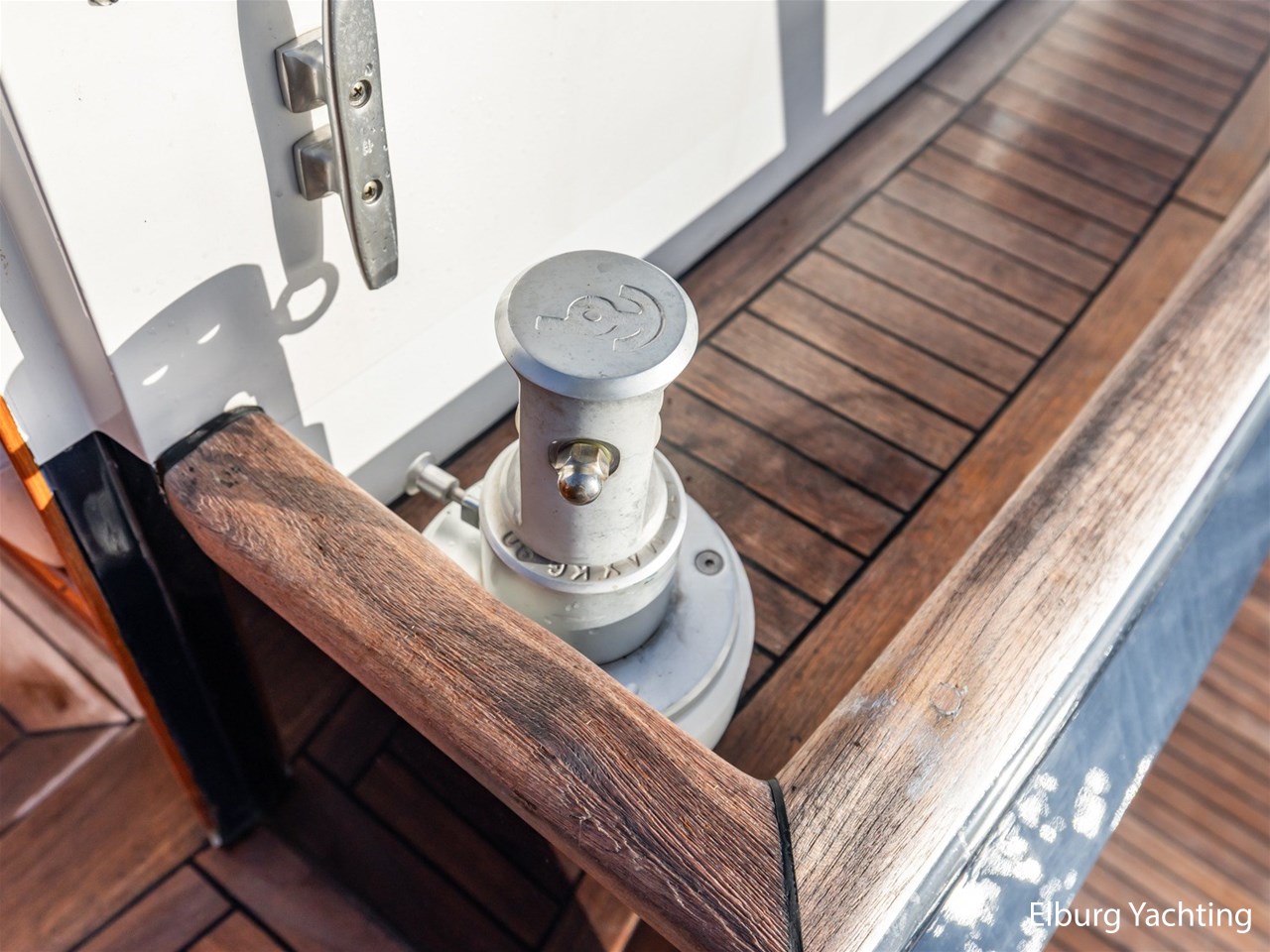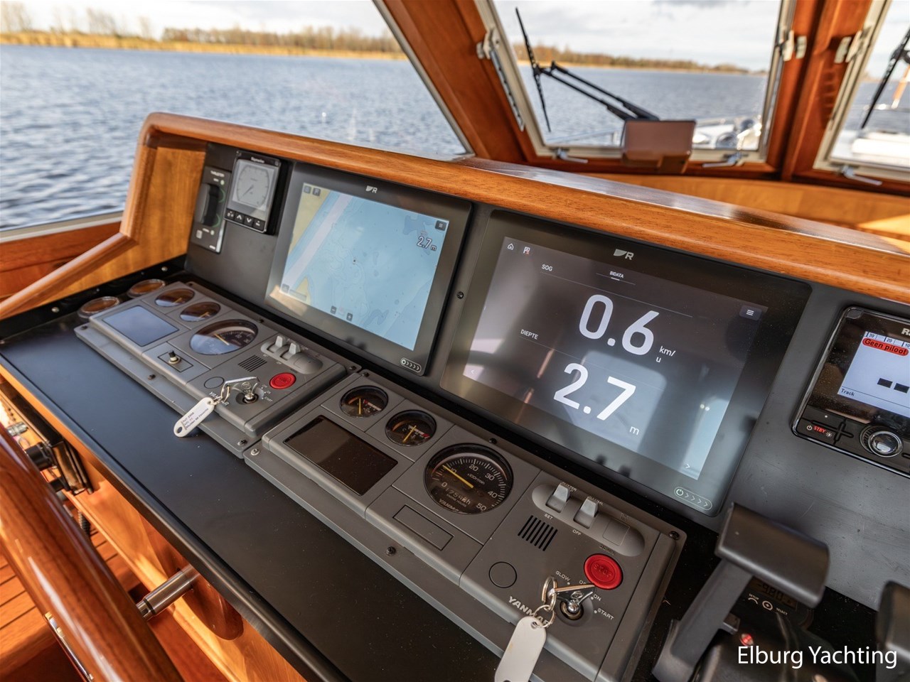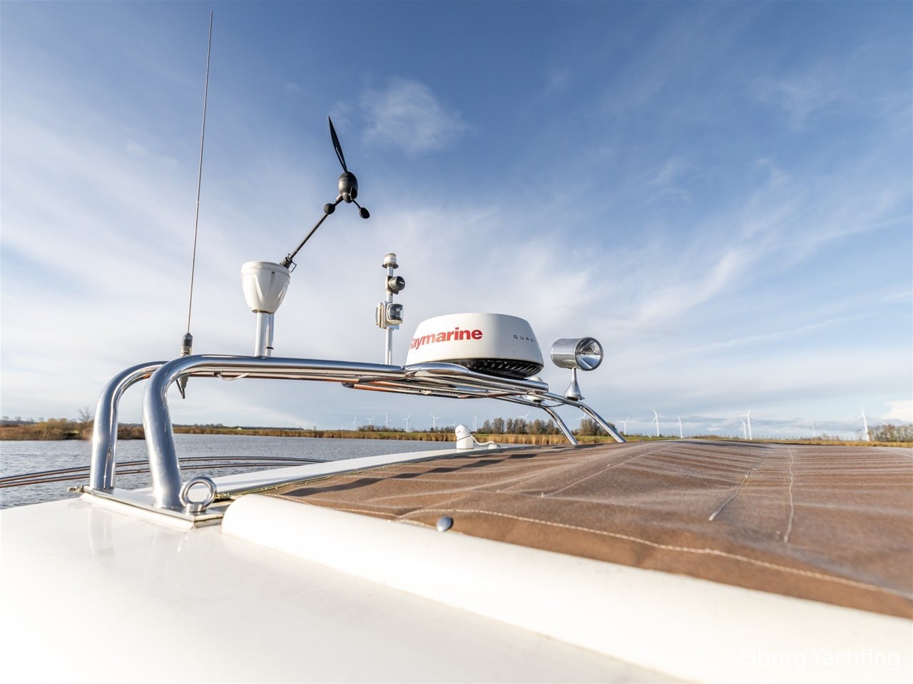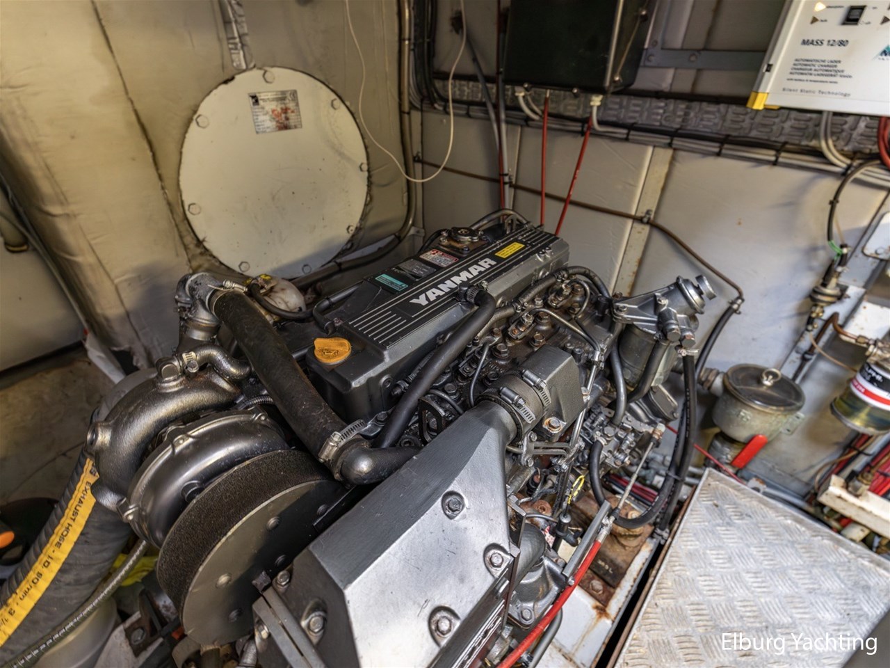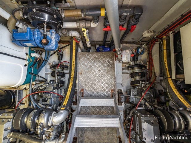 Het onderwaterschip is in diezelfde periode gestraald en behandeld met nieuwe antifouling. In 2023 is groot motoronderhoud uitgevoerd, inclusief de plaatsing van twee nieuwe turbo’s. In 2024 is aanvullende service aan de motoren uitgevoerd. Het jacht is voorzien van schroefassen en vierblads schroeven. De generator is in mei 2025 geserviced. De kruissnelheid bedraagt ca. 8 knopen bij 2500 rpm, met een maximale snelheid van ca. 11 knopen bij 3300 rpm. De economische vaarsnelheid ligt rond de ca. 7 knopen bij 2200 rpm. Qua uitrusting is het jacht voorzien van een uitgebreid en recent vernieuwd Raymarine-navigatiesysteem met onder andere twee Axiom 12” displays, radar, AIS, GPS, autopilot met afstandsbediening, VHF, windmeter en een camera op de radarboog. In 2023-2024 is er een nieuwe hekschroef met afstandsbediening aangebracht, naast de bestaande boegschroef. De kussens op het voordek zijn aanwezig en in 2023-2024 vernieuwd. Verder is het jacht uitgerust met RVS fenderhouders en een zoeklicht. Volledige documentatie van de werkzaamheden is op aanvraag beschikbaar.