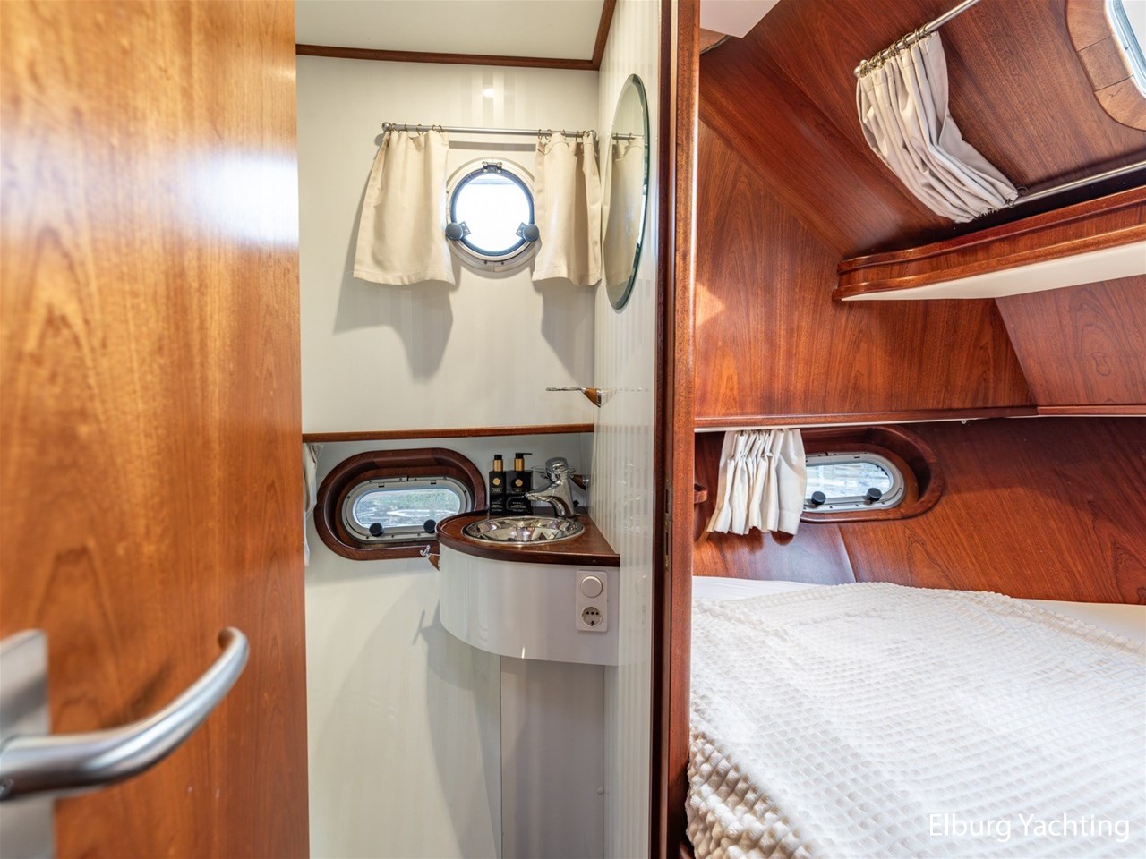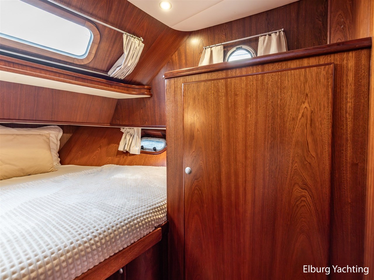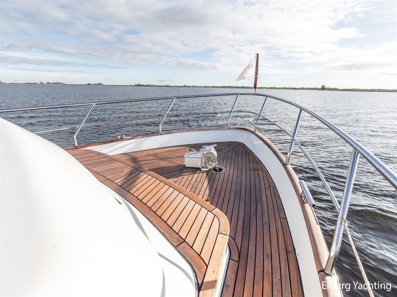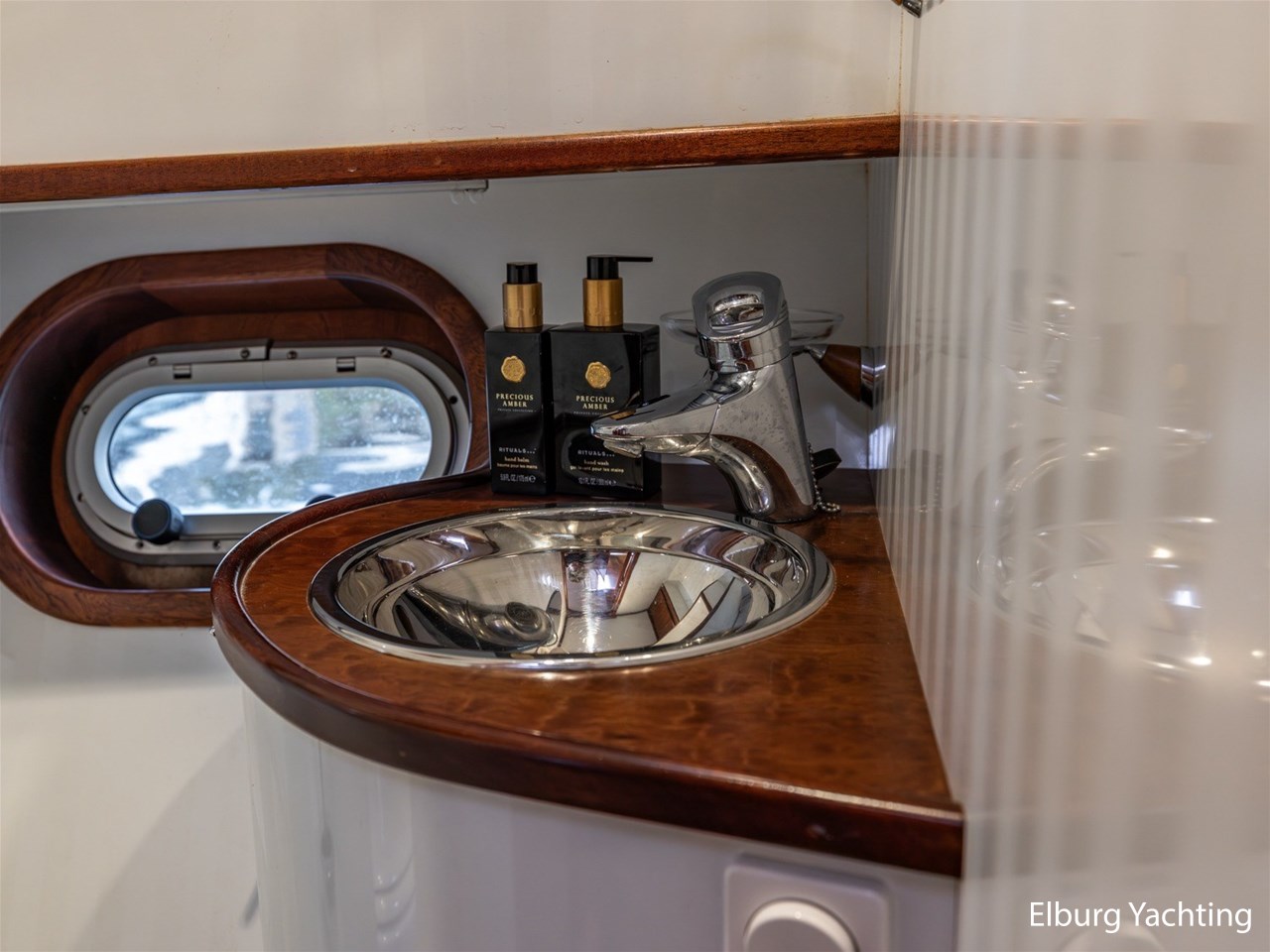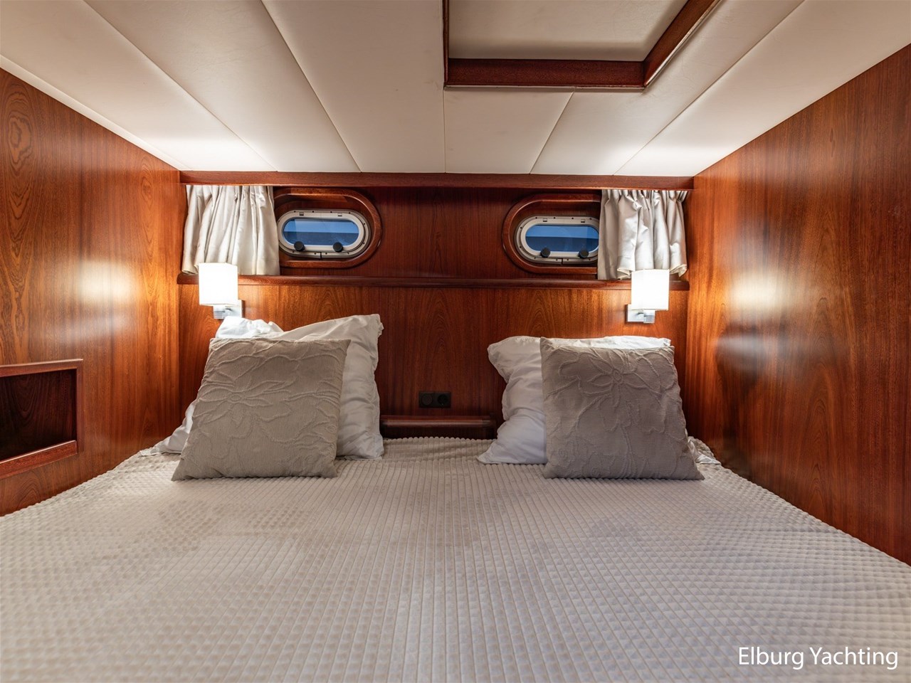 Het onderwaterschip is in diezelfde periode gestraald en behandeld met nieuwe antifouling. In 2023 is groot motoronderhoud uitgevoerd, inclusief de plaatsing van twee nieuwe turbo’s. In 2024 is aanvullende service aan de motoren uitgevoerd. Het jacht is voorzien van schroefassen en vierblads schroeven. De generator is in mei 2025 geserviced. De kruissnelheid bedraagt ca. 8 knopen bij 2500 rpm, met een maximale snelheid van ca. 11 knopen bij 3300 rpm. De economische vaarsnelheid ligt rond de ca. 7 knopen bij 2200 rpm. Qua uitrusting is het jacht voorzien van een uitgebreid en recent vernieuwd Raymarine-navigatiesysteem met onder andere twee Axiom 12” displays, radar, AIS, GPS, autopilot met afstandsbediening, VHF, windmeter en een camera op de radarboog. In 2023-2024 is er een nieuwe hekschroef met afstandsbediening aangebracht, naast de bestaande boegschroef. De kussens op het voordek zijn aanwezig en in 2023-2024 vernieuwd. Verder is het jacht uitgerust met RVS fenderhouders en een zoeklicht. Volledige documentatie van de werkzaamheden is op aanvraag beschikbaar.