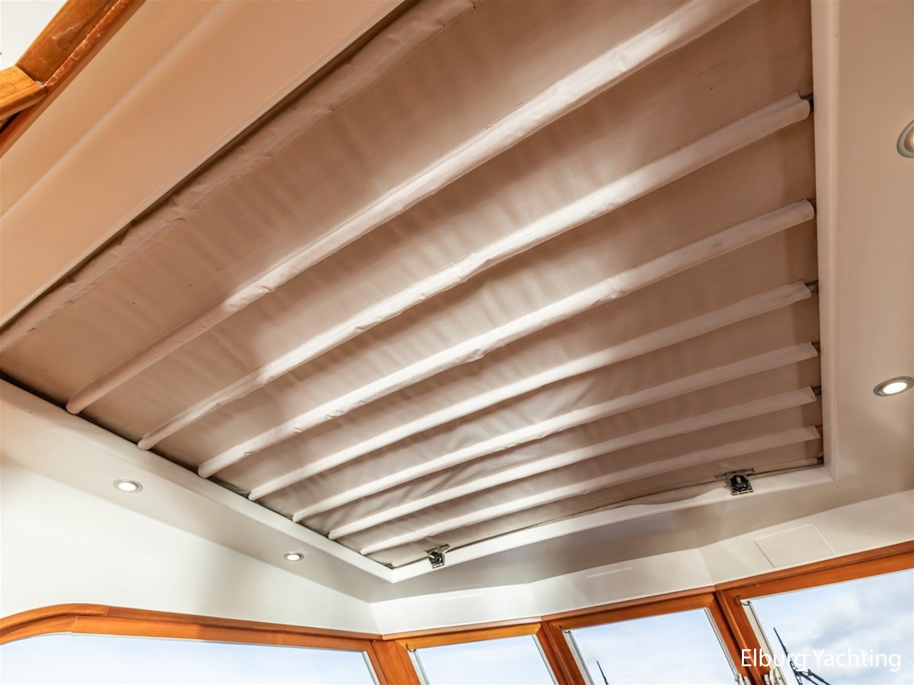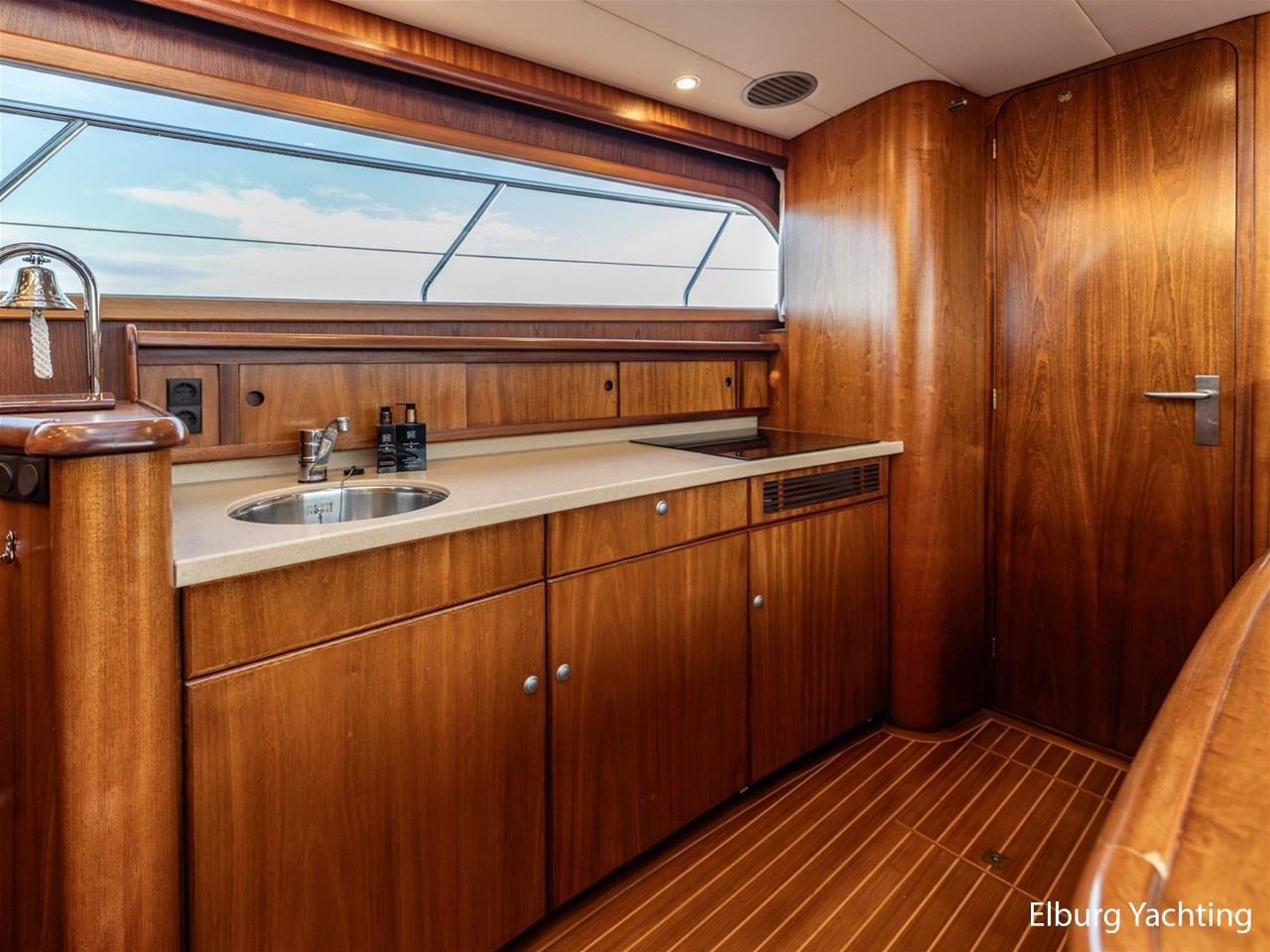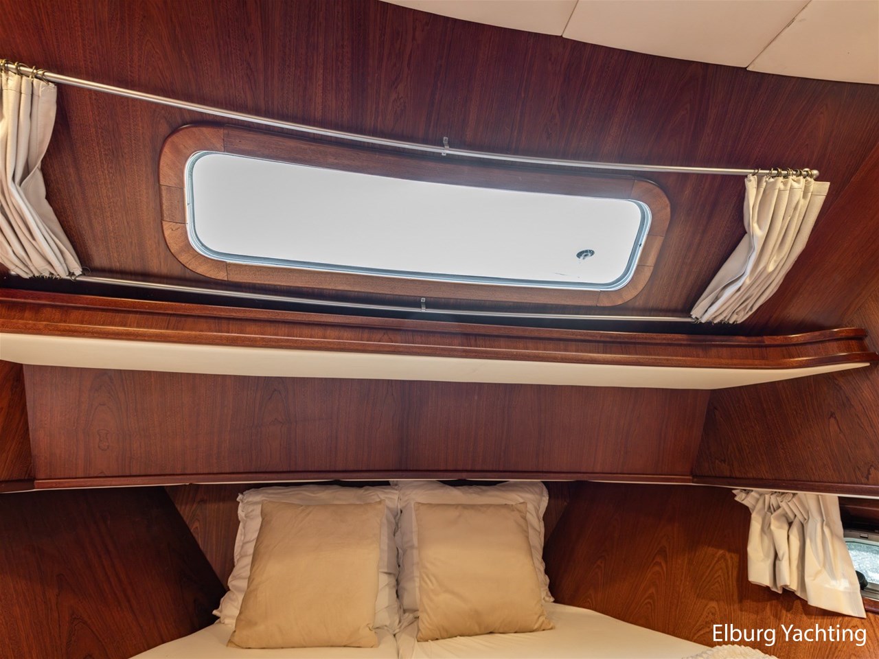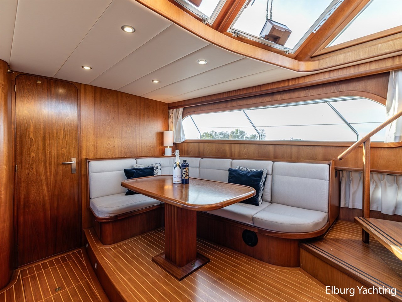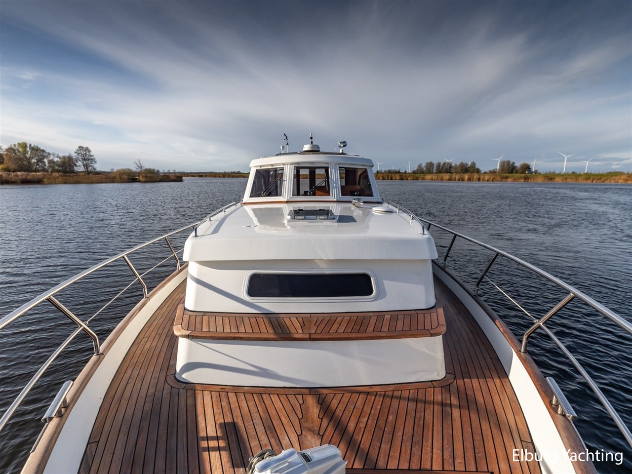 Het onderwaterschip is in diezelfde periode gestraald en behandeld met nieuwe antifouling. In 2023 is groot motoronderhoud uitgevoerd, inclusief de plaatsing van twee nieuwe turbo’s. In 2024 is aanvullende service aan de motoren uitgevoerd. Het jacht is voorzien van schroefassen en vierblads schroeven. De generator is in mei 2025 geserviced. De kruissnelheid bedraagt ca. 8 knopen bij 2500 rpm, met een maximale snelheid van ca. 11 knopen bij 3300 rpm. De economische vaarsnelheid ligt rond de ca. 7 knopen bij 2200 rpm. Qua uitrusting is het jacht voorzien van een uitgebreid en recent vernieuwd Raymarine-navigatiesysteem met onder andere twee Axiom 12” displays, radar, AIS, GPS, autopilot met afstandsbediening, VHF, windmeter en een camera op de radarboog. In 2023-2024 is er een nieuwe hekschroef met afstandsbediening aangebracht, naast de bestaande boegschroef. De kussens op het voordek zijn aanwezig en in 2023-2024 vernieuwd. Verder is het jacht uitgerust met RVS fenderhouders en een zoeklicht. Volledige documentatie van de werkzaamheden is op aanvraag beschikbaar.