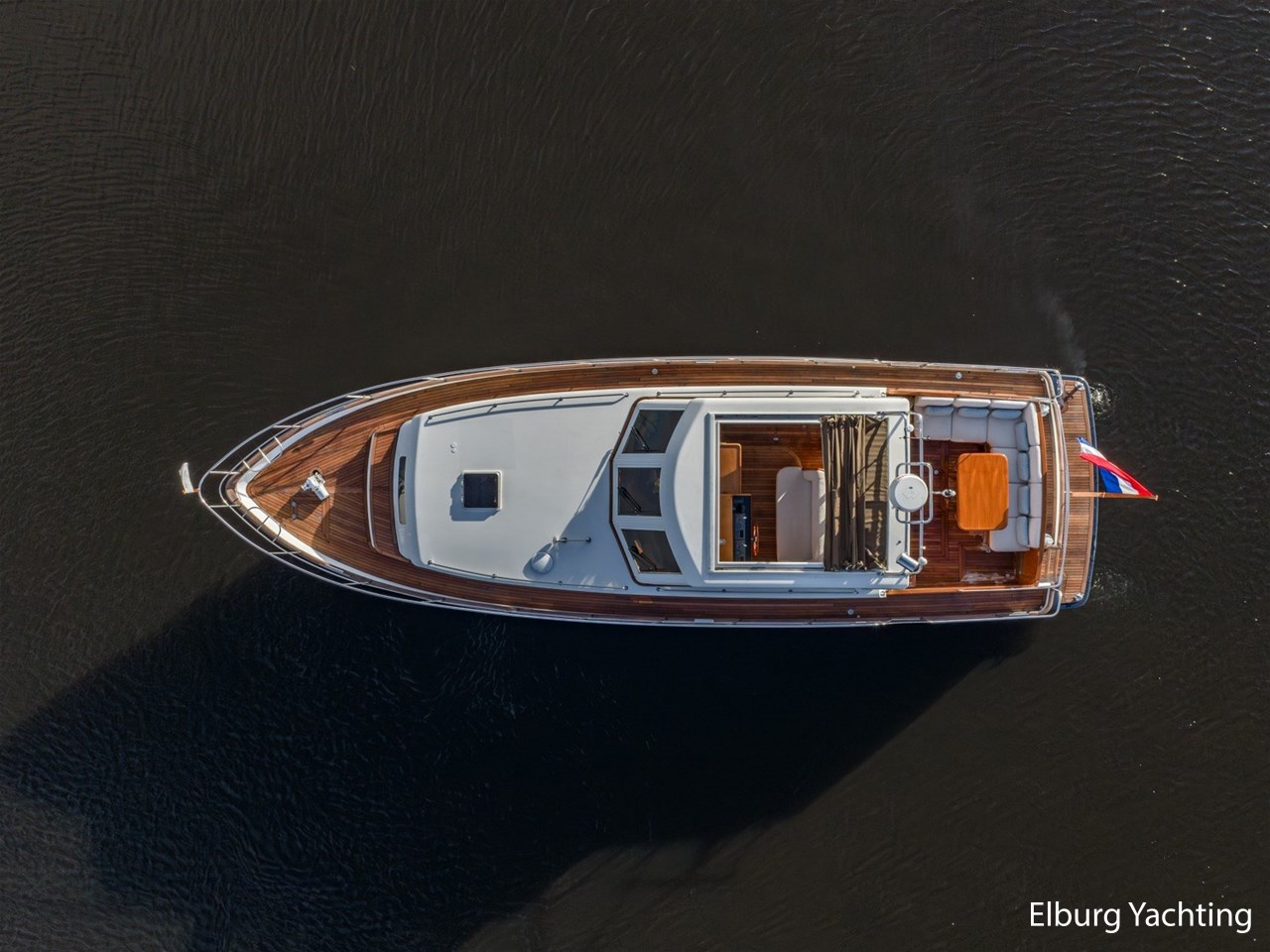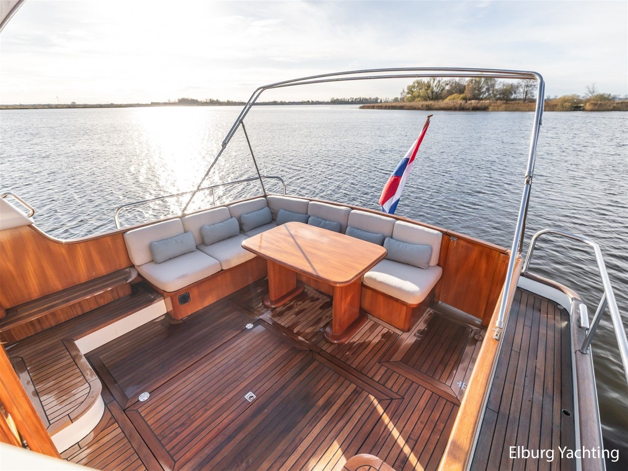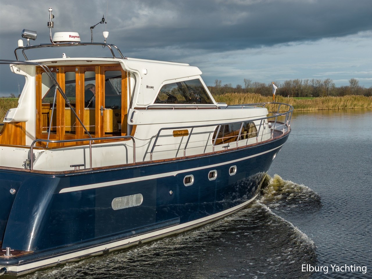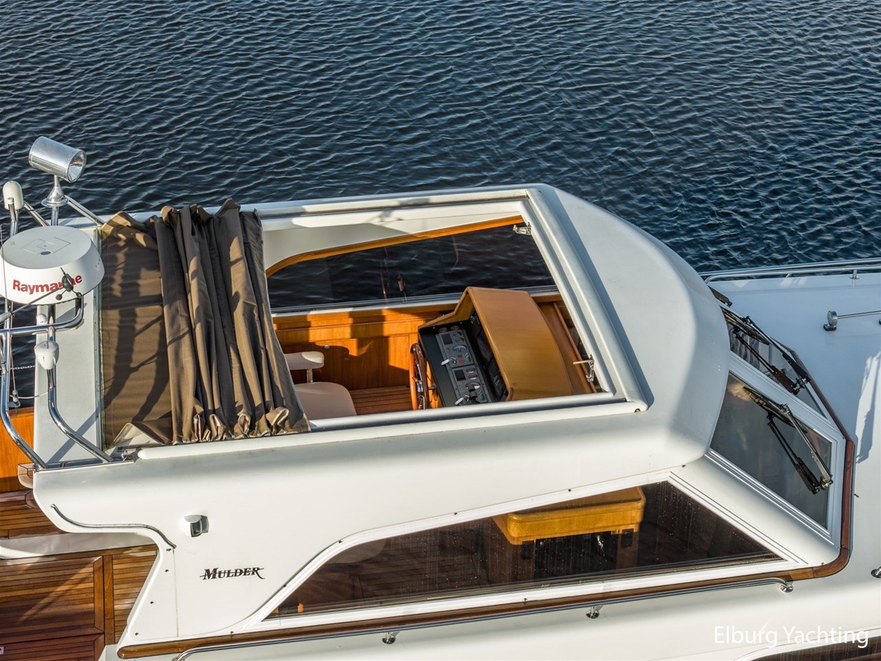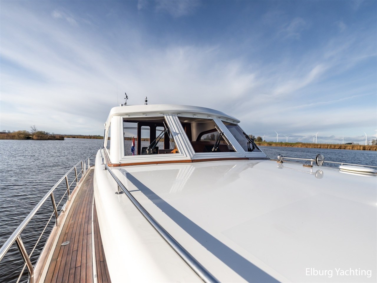 De Mulder Favorite 46 is een elegant en degelijk motorjacht, ontworpen door Guido de Groot en gebouwd door de gerenommeerde werf Mulder Shipyard. Dit jacht straalt tijdloze klasse uit en is ontworpen voor comfortabel en stijlvol verblijf aan boord. De ruime open kuip staat in directe verbinding met de salon en het stuurhuis, wat zorgt voor een open en lichte leefruimte. Het interieur is klassiek uitgevoerd in mahoniehout en voorzien van lichte, recent vernieuwde stoffering. Dankzij de twee hutten, elk met eigen sanitair, is het schip uitstekend geschikt voor langer verblijf aan boord. Tussen 2021 en 2025 is er breed geïnvesteerd in techniek, afwerking en uitrusting. Het teakdek is in 2023-2024 volledig vernieuwd door Jonker Jachtbouw.