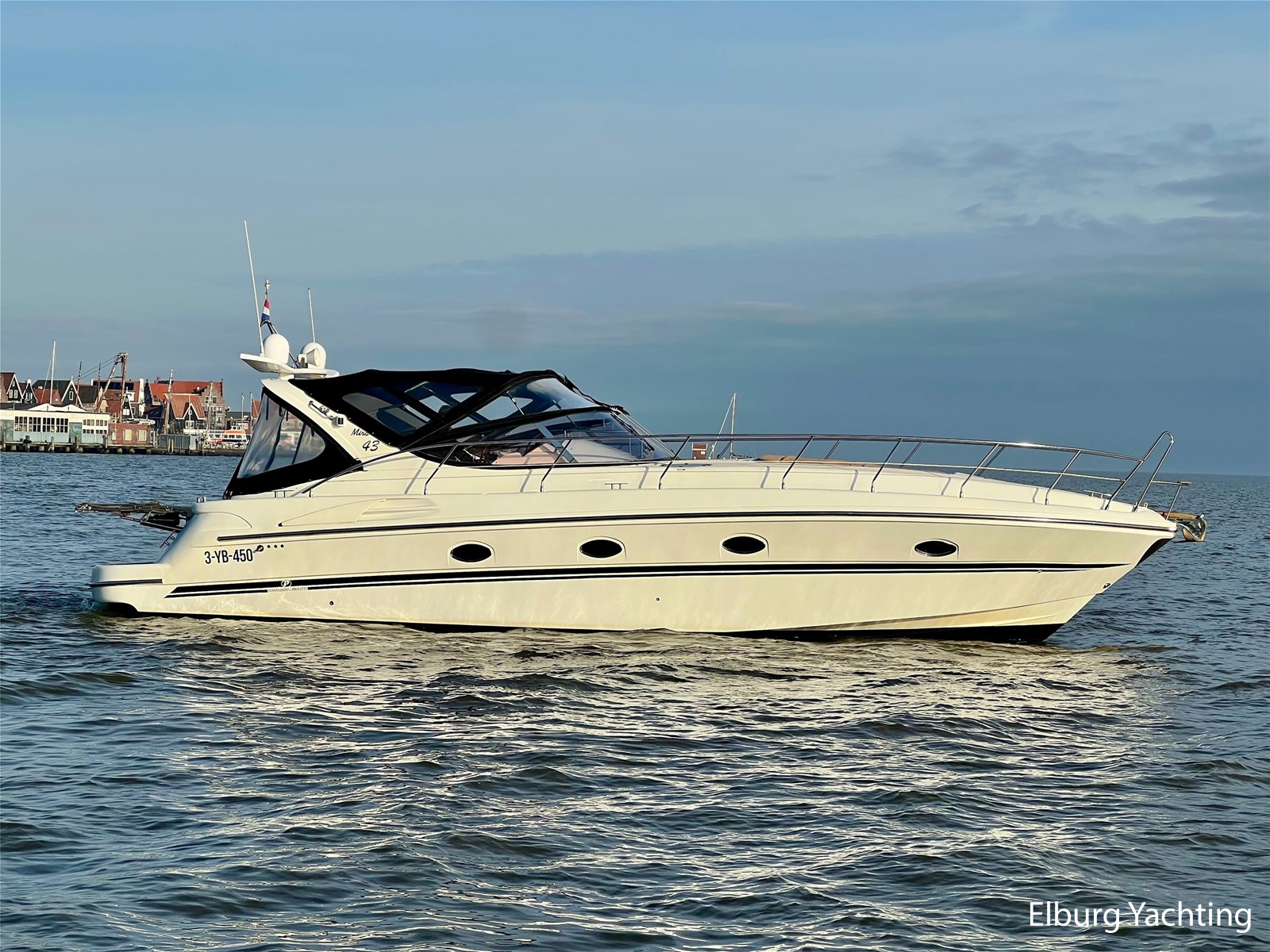 Italiaans design in combinatie met veel praktische ruimte kenmerkt deze Mira 43 van de werf Innovazione e Progetti uit Italie. Dit jacht is van bouwjaar 2004 en is voorzien van twee krachtige Volvo Penta D6 motoren met elk 350 pk. De aandrijving verloopt via twee Volvo Penta DPH hekdrives, welke in 2025 zijn geserviced. Deze Mira 43 is voorzien van: Volledige tent rondom kuip met uitristbare delen, hydraulisch uitschuifbare gangway met afstandsbediening, groot bergluik in zwemplateau, kuip voorzien van koelkast / spoelkom / radio met speakers, loop naar het voordek via gangboorden maar ook binnendoor via opstap bij stuurstand, afneembaar zonnebed op het voordek, elektrisch/hydraulisch bedienbaar luik naar machinekamer, diverse 230V aansluitpunten door de boot, TV in salon (2025), tapijt delen in het interieur uitneembaar, 2 x bergluik in salonvloer. Verfsysteem onderwaterschip vernieuwd in juli 2025. Dit schip is op afspraak in Nederland te bezichtigen. Wij maken graag met u een afspraak voor een vrijblijvend bezoek aan boord.