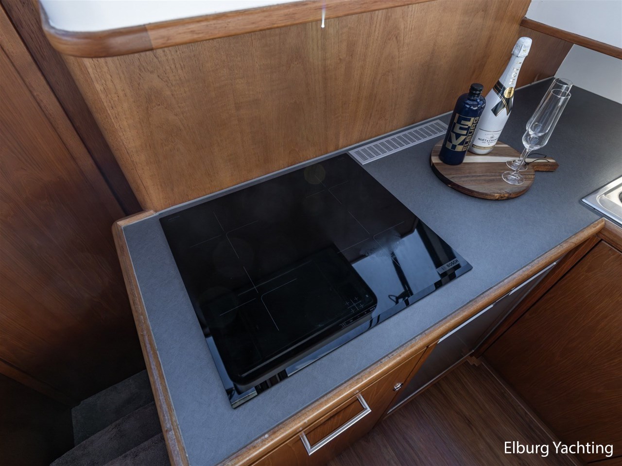Het jacht is daarnaast uitgevoerd met: Vetus airconditioning in salon, extra stevige r.v.s. reling,4 x houten (openslaande) deuren naar open kuip, deur in verschansing naar zwemplateau, geïntegreerde bakskisten met teakhouten deksel, grote verwarmde (d.m.v. radiator) opbergruimte onder de kuip, dekwaspomp, lederen bekleding, dubbele r.v.s. stootlijst, vlucht/ventilatie luik, luxe vaarstoel (met leer bekleedt), Mastervolt Mass inverter/charger Control, r.v.s. bolders en kikkers gemonteerd op r.v.s. platen, Bosch was/droger combinatie, zelflozende kuip, kuiptent, klapbare radarbeugel, laminaat vloer in salon, traanplaten in machinekamer, dubbele wierfilters, dubbele brandstoffilters, het jacht heeft een zeer ruime beschutte kuip + zeer ruime salon. Door de 4 klapdeuren ontstaat er een zeer gezellige ruimte als geheel.