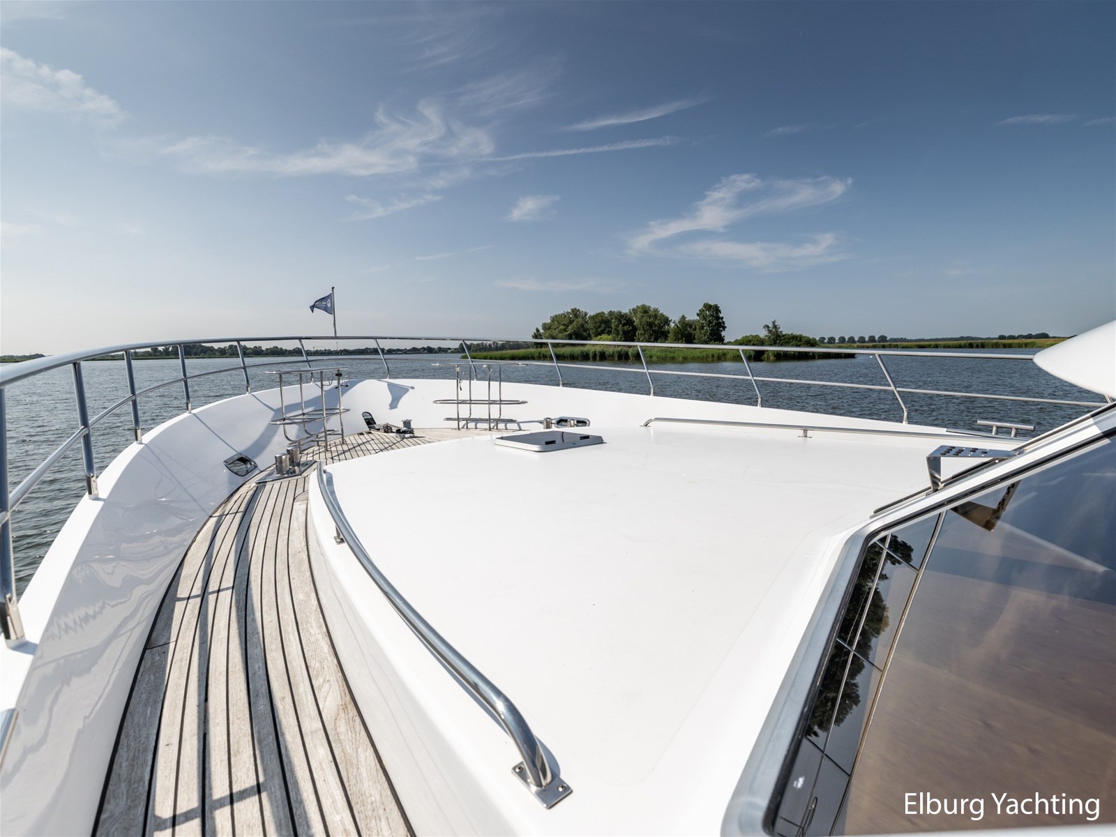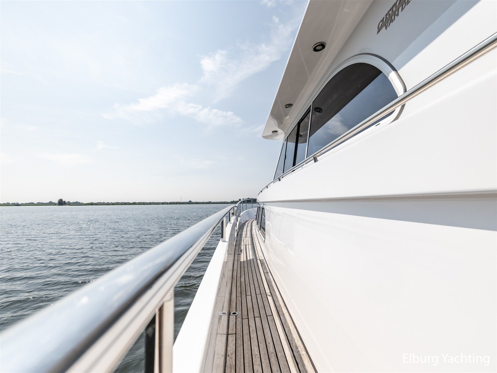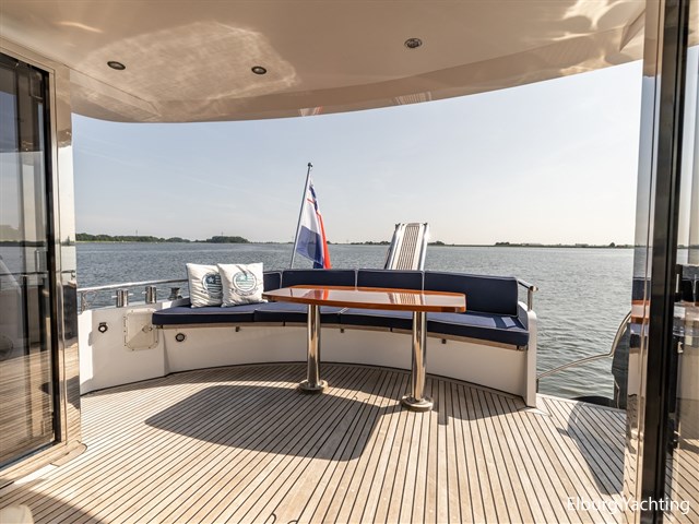 Ook buitenom is het comfort volledig doorgevoerd. Het schip beschikt over een teakdek rondom en een groot zwemplateau met geïntegreerde gangway en verlichting. Een luie trap vanaf het achterdek maakt de toegang tot het zwemplateau extra comfortabel.