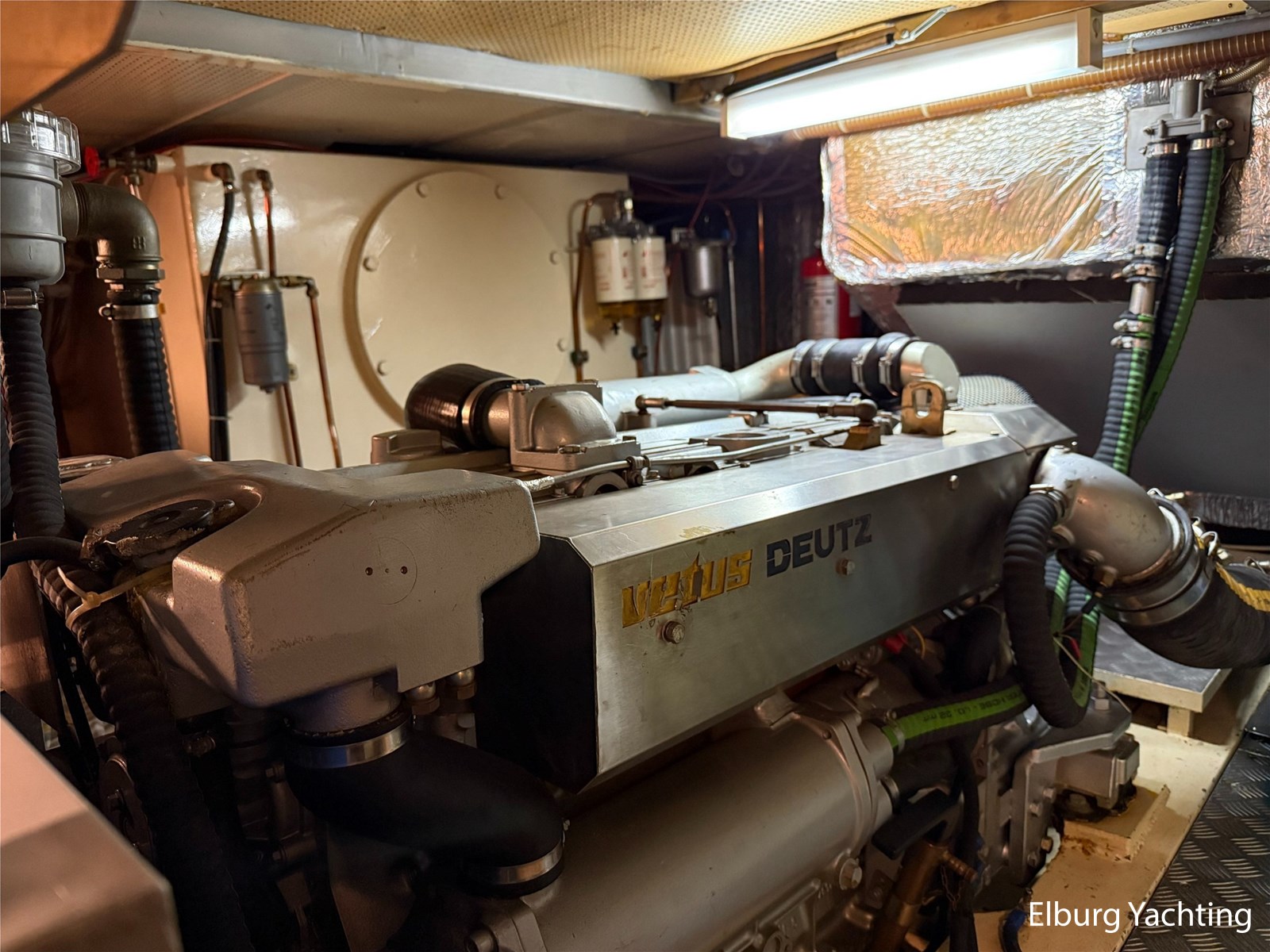 Het schip is ca. 14.99 meter lang, 4,50 meter breed en steekt ca. 1.20 meter diep en wordt voortgestuwd door een 200 pk sterke Vetus Deutz 6 cilinder dieselmotor. Rondom is het jacht voorzien van een Teak dek met brede gangboorden en een fijne bank op het achterdek. De stuurstand is overzichtelijk en is voorzien van een draaibare bestuurdersstoel + meevaarbank met onderliggende koelkast.
